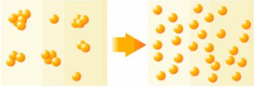 附聚体:指以点、角相接的原级粒子团族或小颗粒在大颗粒上的附着,其总表面积比凝聚体大,但小于单个粒子组成之和,再分散比较容易。凝聚体和附聚体也称二次粒子。