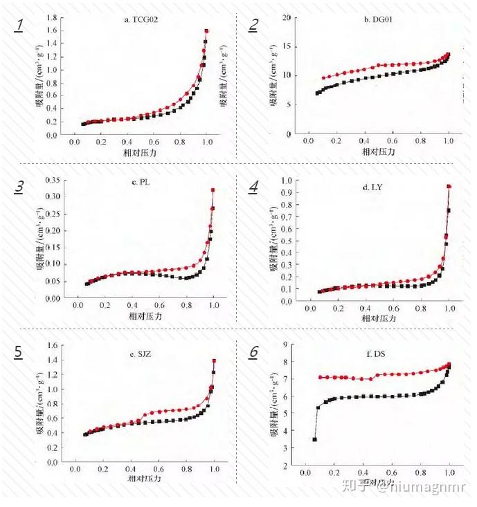 图4:6组煤样的低温氮吸附/脱附曲线