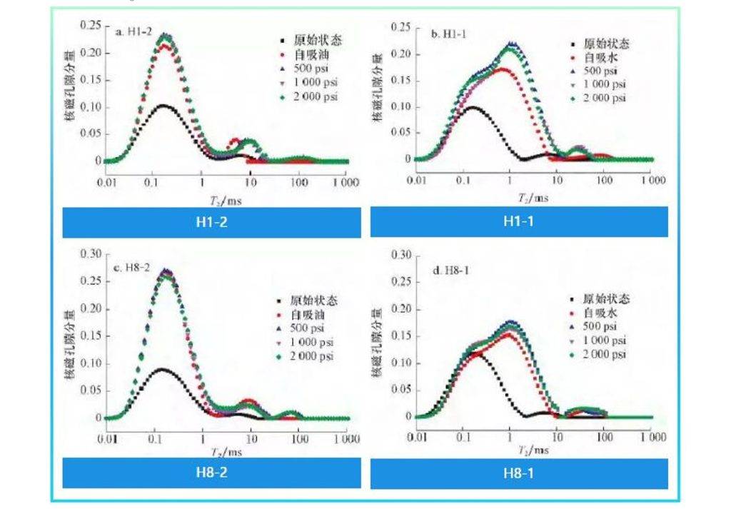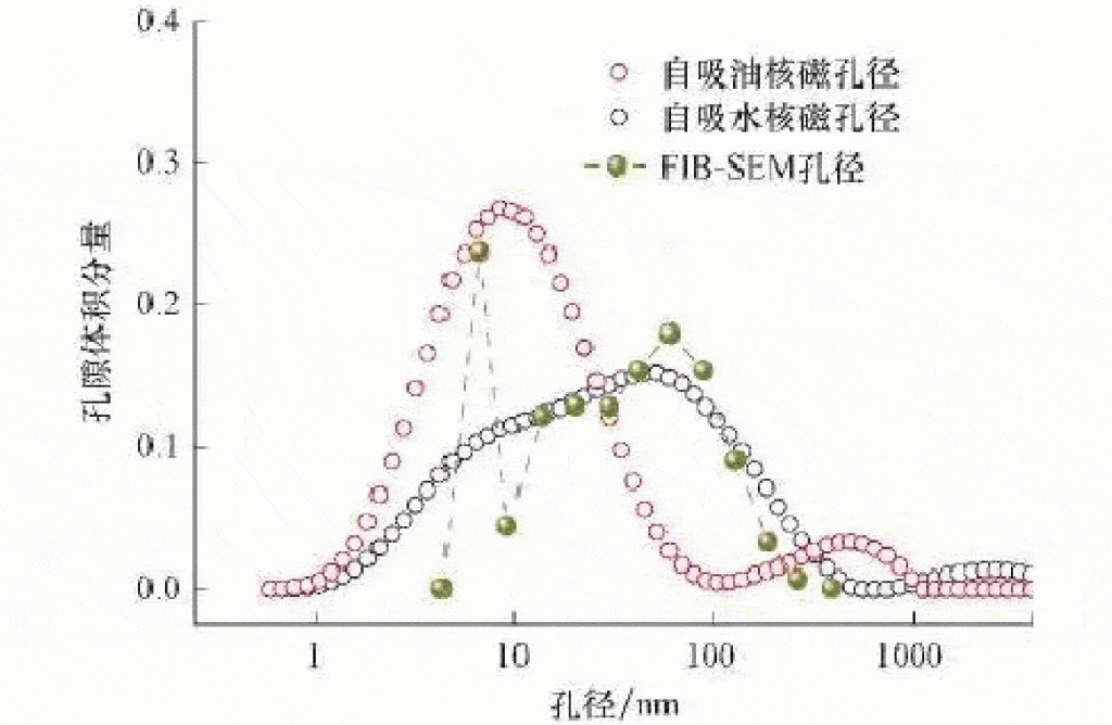 低场核磁是确定孔隙度和孔隙尺寸的有利工具。那么基于页岩中有机孔和无机孔润湿性的差异,分别在饱和水和油条件下观测氢核信号,从而建立弛豫时间与孔径的定量关系,这就为利用核磁共振技术确定有机孔和无机孔提供了可能。