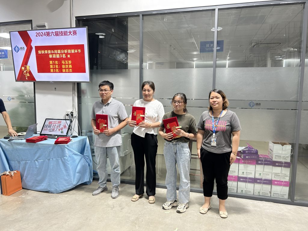 在本届大赛中,我们精心策划了五个赛项,全面覆盖了综合知识、电烙铁焊接技能、调试技能、安全实操以及持续改善技能。这些项目不仅考验了员工们的理论功底,更挑战了他们的实践能力。